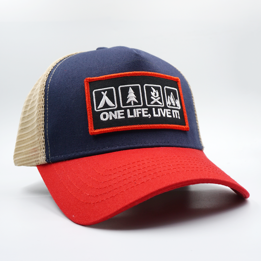 Vintage “ONE LIFE, LIVE IT!”Outdoor Hiking Embroidery Patch Trucker Cap PB38-1