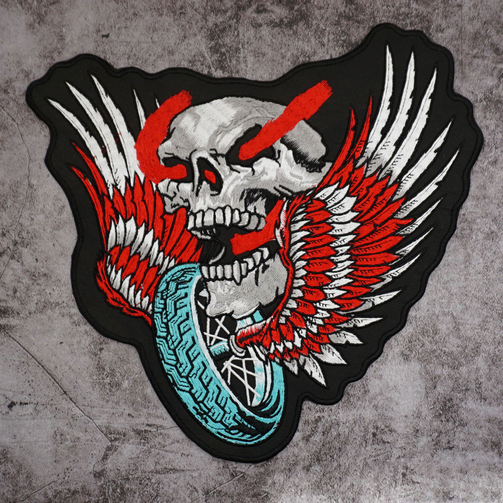 Winged skeleton tire Large Size Motorcycle Rider embroidery patch L77